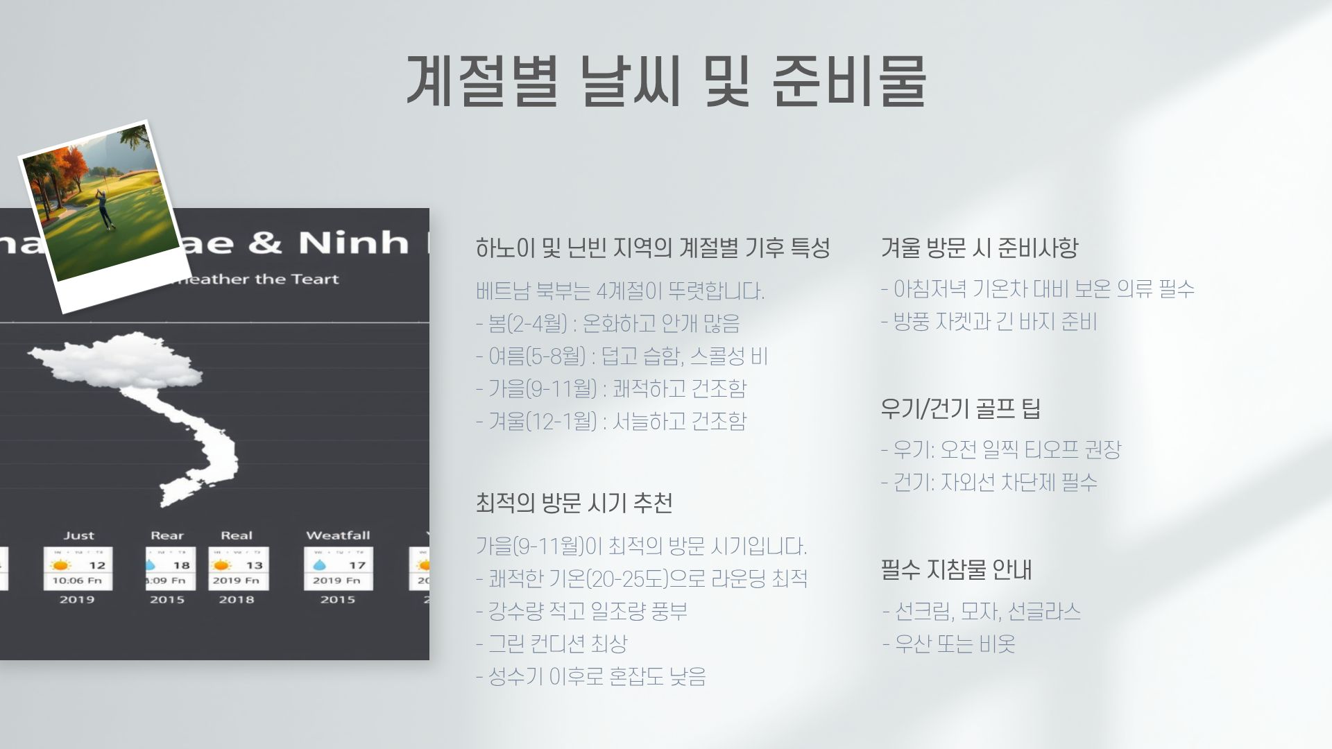 • 우천&골프장 휴장시 일정은 관관으로 대체되며 환불금은 없습니다.