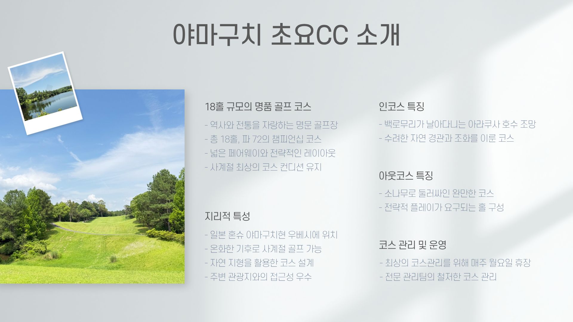 [ 일본 ] 야마구치 초요CC 3박4일 63홀&72홀 #소도시감성 #1인실변경무료 #개장60주년특가 #진에어 #루트인우베호텔